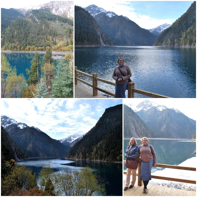We took a bus 15km to the top of the Shuzheng Valley, past 37 ribbon lakes, clear water reflecting the mixed pine and deciduous forest on the hills. We caught glimpses of snow capped peaks on both sides of the bus as we climbed. At the top of Shuzheng Valley we changed buses and headed up Zechawa Valley. Our bus went all the way to the top, an 18km drive, dropping us off before 8am – we were one of the first groups to get up there. The bus stop at the top of the road looked down over Long Lake (Chang Hai).