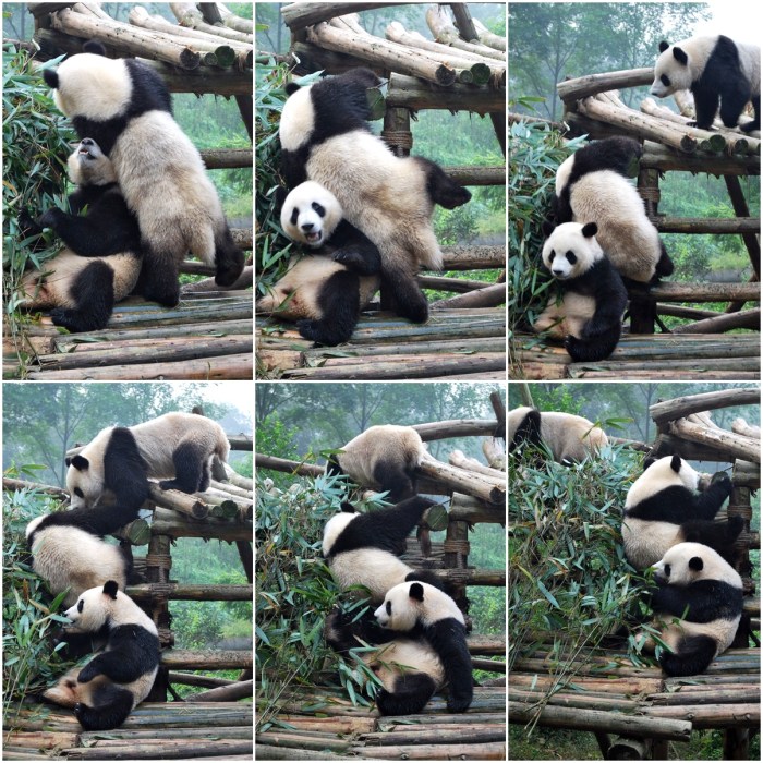 We spent a bunch more time watching pandas in a bunch of different enclosures. We stopped at to see the video of the centre and chatted to some other tourists. One lady told us they hadn’t been able to see the red pandas – some bigwig was visiting and the exhibit had been temporarily closed to the general public. It seems our decision to go there first was fortuitous!