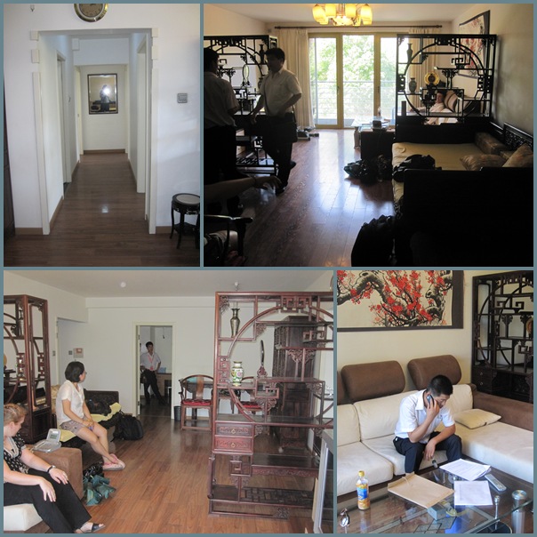 I’ve attached pics of the place for those who are interested. It is 200m2, on the second floor, has AC in every room, and in-floor heating. There is a small outdoor balcony on the living room, which is at the back of the complex (no traffic noise, no other apartment buildings outside). There are wood floors thoughout, the bathrooms have pretty tiles, and the spare room (my studio/study and probably many more uses) is HUGE. Some of the furniture will only be there til the end of the year – all the dark wood Chinese style furniture, the pingpong table, and a motorised mahjong table in bec’s room (can’t see it in the photo).