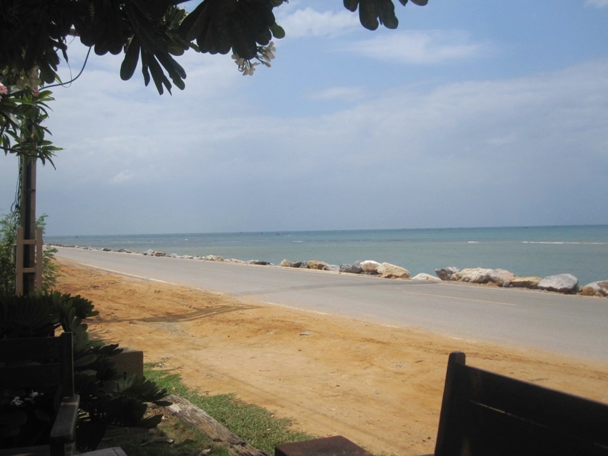 We drove all the way to Pranburi and ended up relaxing in the front garden of a little hotel – we ordered drinks and hung out under a frangipani tree that protected us from a little sunshower. One of the more unexpected sights of the trip was four Ferraris parked outside a small resort. All up we travelled 45km. It was a long day but very enjoyable.