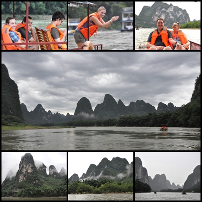Next we drove up to the most scenic section of the Li River and boated along for 1.5 hours. We drove through a big thunderstorm on the way there, and came across many trees that had fallen down, but the rain abated as we got on the boats. It meant pleasantly cool weather for the boat ride rather than muggy heat, which made me happy, although I think others might have been cold.