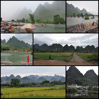 The scenery along the river was wonderful – huge bamboo stands along the riverside dwarfed the boats we (and others) were in, but then the bamboo stands were dwarfed by the karsts that reared up behind them. At times, wisps of cloud swept along the karsts and it was so beautiful! At the end of the ride imagine my surprise when we ran into a family I know from Langfang! We took a few photos for each other before going our separate ways.