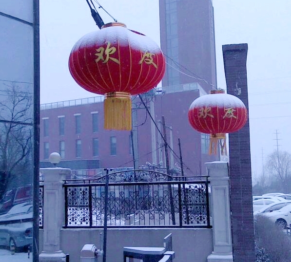 春节 (chūn jié) or “Spring Festival” is the official name of the Chinese new year holiday in mainland China. The official name came into use in 1912, after Sun Yat-sen declared the Republic of China, to avoid confusion over the Gregorian calendar’s new year on January 1st. It feels odd to call it “Spring” anything, when most years it’s very clearly still winter. While most decorations are red and gold and not at all season specific, there are several fake blossom trees outside my building, and it was quite entertaining to see them in the snow!