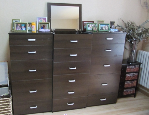 Oh, how wonderful it was to have those two pieces of furniture settled into my Wangjing apartment! A China cabinet made deep enough to fit my biggest dinner plates, with cupboards tall enough for my tallest drinking glasses, and shelves with cable access holes. My three-piece bureau – three standing chests of drawers that sat together to look like one big dresser, the centre one with a hinged lid revealing a mirror – and made to be at the right standing height for tall, foreign me!