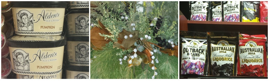 Also astounding: a grocery store. Pumpkin ice cream, Tasmanian bluegum gumnuts and painted eucalyptus in a decorative arrangement, and “Australian style liquorice”. Whatever that is…