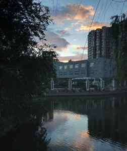I walked a little, found a quiet spot by a canal to sit and watch the skies, then walked back. I stopped to appreciate flowers, rippled waters, silhouetted leaves, and the ever-changing colours in the clouds. I even did a little people-watching. Lots of people, of all ages, were out walking. A group of aunties were dancing (as always). I particularly appreciated being left alone – no one talked to me, stared at me, or commented on me. Not that I noticed, anyway, and that’s good enough for me!